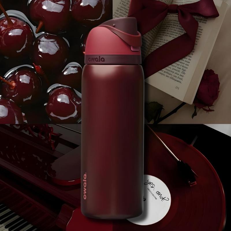 NEW Owala Freesip 32Oz Black Cherry Insulated Stainless Steel Water Bottle, Water Bottle Bpa-Free Sports 32 Oz, Valentine'S Day Gifts